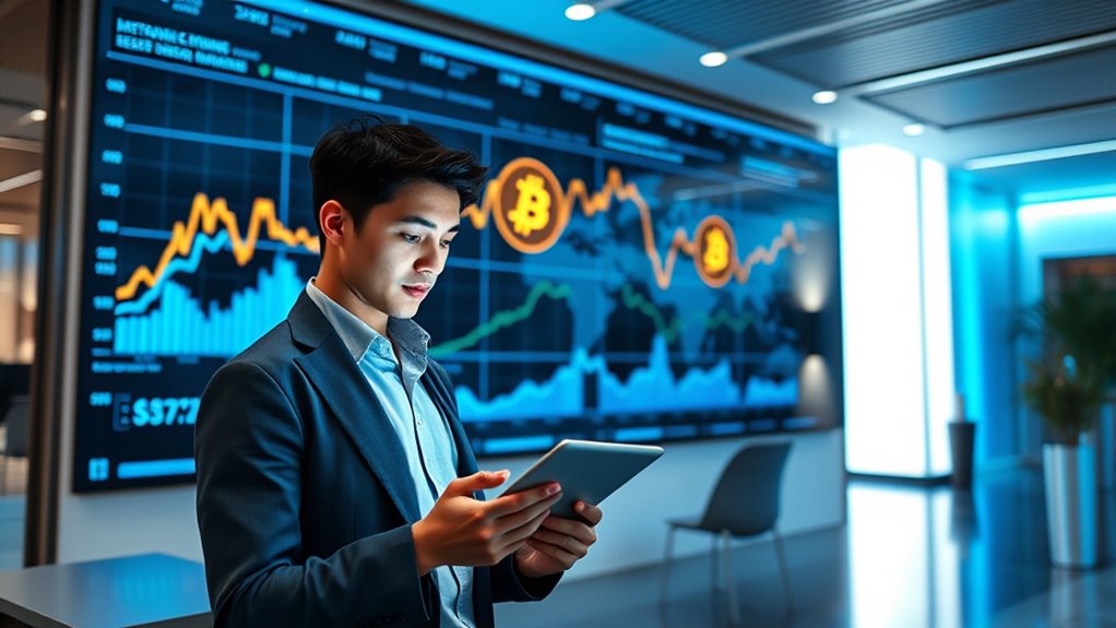 Transparent interest mechanics are essential for building trust and confidence in crypto lending platforms. You want to know exactly how your earnings are calculated and when you’ll see returns. These platforms clearly outline their interest calculation methods, whether they accrue daily, weekly, or monthly, and specify if interest compounds or is paid out directly. You also gain insight into how interest rates may fluctuate based on market conditions or platform policies. User dashboards display real-time interest accrual, making it easy to track your earnings. Plus, transparent terms reveal any fees or penalties related to withdrawals or early termination. This openness helps you make informed decisions, reduces surprises, and fosters a sense of security when participating in regulated Bitcoin savings accounts. Additionally, understanding interest rate fluctuations can help you better anticipate your potential earnings over time.