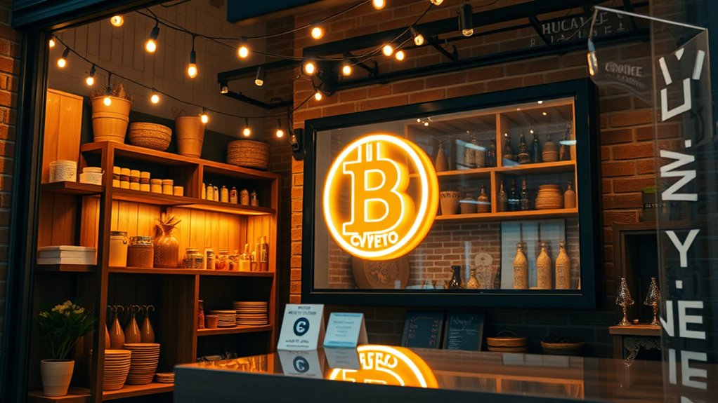 Adopting digital currencies can give small businesses a distinct edge in competitive markets by showcasing innovation and forward-thinking. When you accept crypto, you signal to customers that your business embraces cutting-edge technology, attracting tech-savvy and early adopters. This differentiation helps you stand out against competitors still relying solely on traditional payment methods. Offering crypto payments can also appeal to a broader customer base, especially the 28% of American adults owning crypto in 2025, increasing your sales opportunities. Additionally, integrating crypto demonstrates your ability to adapt to evolving market trends, enhancing your reputation as an innovative leader. By leveraging digital currencies, you position your business as modern, flexible, and ready for future growth, giving you a strategic advantage in increasingly digital and competitive industries.