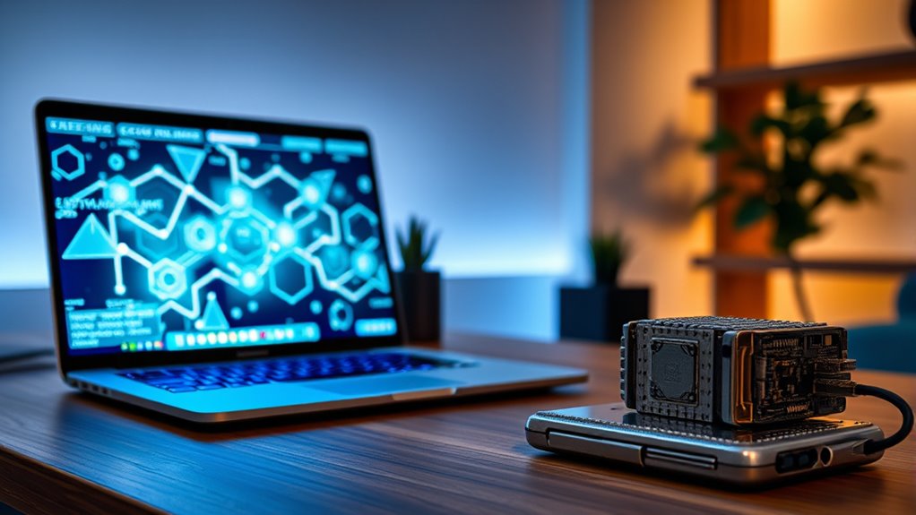 Hardware wallets aren’t inherently immune to quantum attacks. While they store private keys offline, if your wallet uses legacy encryption or addresses with exposed public keys, a future quantum computer could potentially crack those keys. To enhance security, switch to addresses with unknown public keys, use quantum-resistant cryptocurrencies, and keep your firmware updated. Staying informed about advances in quantum-resistant cryptography helps make certain your assets stay protected in the long run.