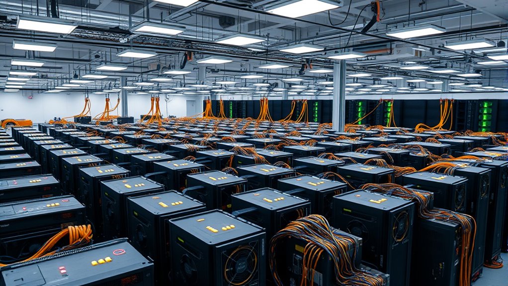 Innovative hardware and software solutions are at the core of Block’s effort to boost mining efficiency. You benefit from the Proto Rig’s modular design, which extends equipment lifespan and reduces upgrade costs. Its tool-free, quick-repair features minimize downtime, keeping your operations running smoothly. The system’s focus on heat dissipation, noise reduction, and dust management ensures reliable performance even in home settings. Power efficiency is optimized with advanced 3-nanometer chips, balancing high hashrates with lower energy consumption. Complementing this hardware, the open-source Proto Fleet software streamlines management across large mining operations. It consolidates power scaling, diagnostics, and monitoring into a single platform, reducing operational complexity and costs. Incorporating Personal Growth principles such as mindfulness and stress management can further enhance operational focus and resilience. These innovations work together to improve overall efficiency, making bitcoin mining more accessible, sustainable, and cost-effective.