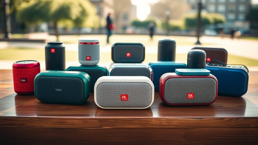 If you’re looking for the 15 best Bluetooth speakers of 2025 that deliver crisp, powerful sound and are easy to carry, I’ve got you covered. I focused on models with deep bass, long battery life, waterproof features, and portable designs—everything you need for outdoor adventures or indoor use. From compact options like the JBL Flip series to rugged waterproof speakers like Ortizan, I’ll share the top picks that balance sound quality and portability. Keep going to find out more.