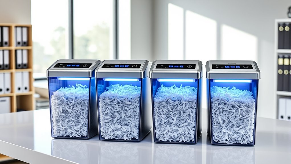 Choosing the right shredder is like finding a trusted vault for your secrets, quietly guarding your privacy amid the chaos. Whether it’s the compact power of the Amazon Basics model or the heavy-duty strength of the BONSEN, each one offers peace of mind in a cluttered world. As you consider your needs, imagine those sensitive documents vanishing effortlessly, leaving only safety and confidence behind—your personal shield in the digital age.