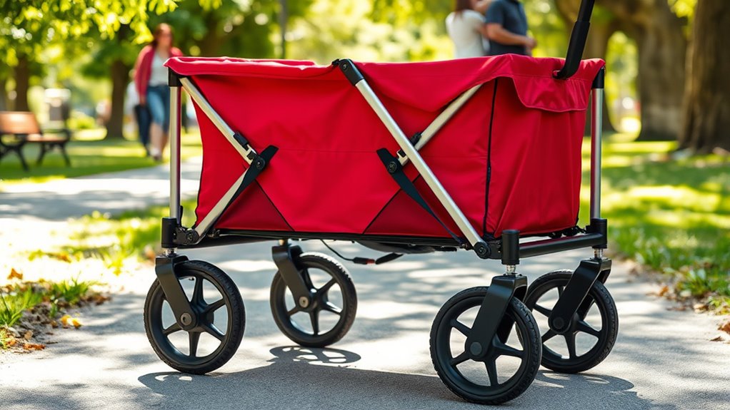 I know some might worry that foldable wagons won’t last or handle tough terrain, but these models prove otherwise. With sturdy construction and all-terrain wheels, they’re built to last and make your hauling easier. Plus, their compact foldability means storing them is a breeze—no sacrifice on durability. So, whether you’re headed to the park, garden, or grocery store, these wagons combine convenience and strength, making your everyday tasks simpler and more efficient.