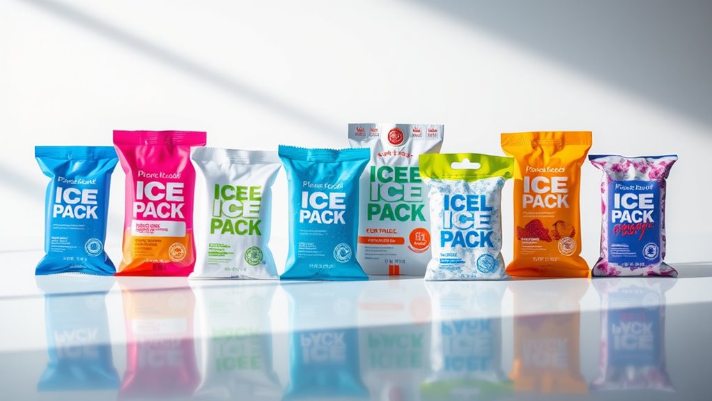 When evaluating ice packs, considering their environmental impact guarantees we make responsible choices. Reusable ice packs are a smart option because they cut down on waste and reduce landfill contributions compared to single-use options. Many are made from BPA-free, non-toxic materials, which are safer for the environment and help lower chemical pollution. Choosing durable, long-lasting ice packs means we don’t have to replace them often, saving resources in the long run. Some are crafted from recycled or eco-friendly plastics, further decreasing their ecological footprint. However, proper disposal and recycling of used packs are essential to prevent plastic pollution and environmental harm. By keeping these factors in mind, we can select ice packs that are both effective and environmentally responsible.