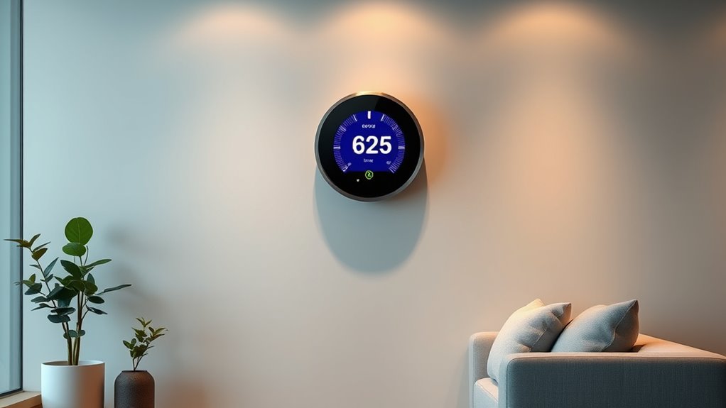 If you’re looking to save energy and boost comfort in 2025, I recommend exploring the top smart thermostats like ecobee, Google Nest, and Emerson Sensi. These models offer excellent automation, voice control, and compatibility with various smart home ecosystems. Many feature energy reports, adaptive scheduling, and easy DIY installation. Keep in mind wiring needs and system compatibility. Stay with me to discover the best options and how they can transform your home climate management.