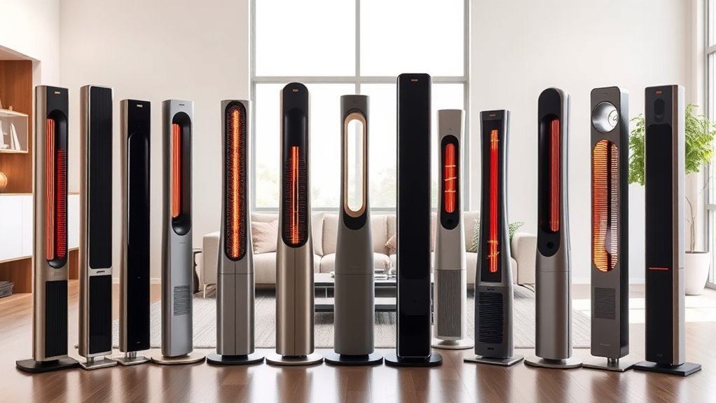 Looking for the best tower fans of 2025? I’ve tested a variety, and the top picks include models like the Dreo Tower Fan, Vornado OZI42, and LEVOIT, which offer powerful airflow, ultra-quiet operation, and sleek designs perfect for bedrooms and living rooms. There are also budget-friendly options like Amazon Basics and Lasko. If you want detailed insights on features, performance, and what fits your space, keep exploring—there’s plenty to discover.