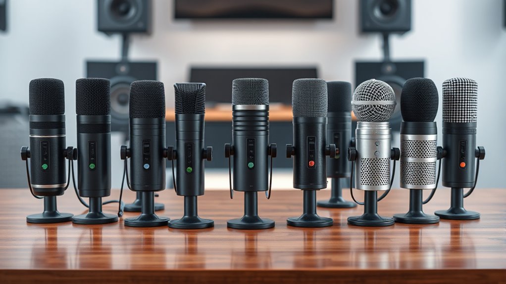 Looking for the best USB microphones for crisp sound quality in 2025? I recommend checking out options like the effortless Logitech Yeti, versatile Shure MV7+, or wireless Lavalier mics for mobile use. It’s important to evaluate factors like pickup pattern, connectivity, and build quality to match your needs. If you stick around, you’ll find detailed insights into my top picks and what makes each stand out this year.