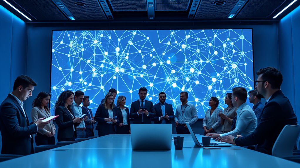 Enterprise blockchains are genuinely transforming industries by boosting security, transparency, and efficiency, with rapid adoption across sectors like finance, supply chain, and pharmaceuticals. They reduce costs, automate workflows, and improve trust among stakeholders. Technological innovations and clearer regulations further accelerate their impact. While some challenges remain, their potential is undeniable. If you want to understand whether it’s just hype or real disruption, exploring the latest developments can provide clarity on this evolving landscape.